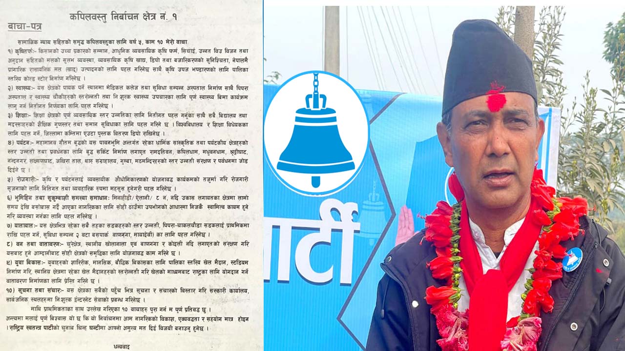 जनहित अनलाईन, कपिलवस्तु । फागुन २१ मा हुने प्रतिनिधि सभा निर्वाचनका लागि राष्ट्रीय स्वतन्त्र पार्टी रास्वपा कपिलवस्तु निर्वाचन क्षेत्र नम्बर १ मा अधिवक्ता मोहन
