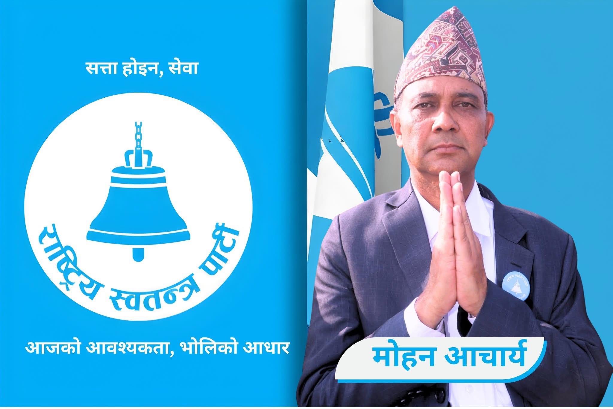 जनहित अनलाइन, कपिलवस्तु । आगामि फाल्गुन २१ मा हुने प्रतिनिधिसभा निर्वाचनमा राष्ट्रिय स्वतन्त्र पार्टी कपिलवस्तु निवार्चन क्षेत्र नम्बर १ बाट अधिबक्ता मोहनलाल आचार्यले उम्मेद्वारी दिनुभएको छ । बाणगंगा ५ सिमलखोरमा स्थायि बसोवार रहेका आचार्य हाल पेशाको शिलशिलामा बाणगंगाको चारनम्बर जितपुर र ललितपुरमा बसोवास गर्दै आउनु भएको छ ।