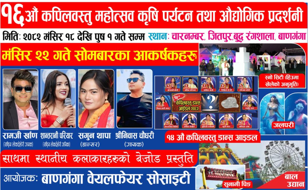 १६औं कपिलवस्तु महोत्सव: आज रामजी खाँण, शान्तारानी परियार लगायतका कालाकारको प्रस्तुती रहने